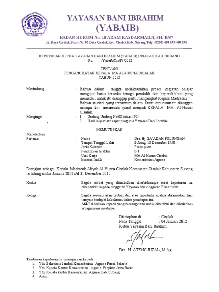 Contoh Surat Keputusan Yayasan